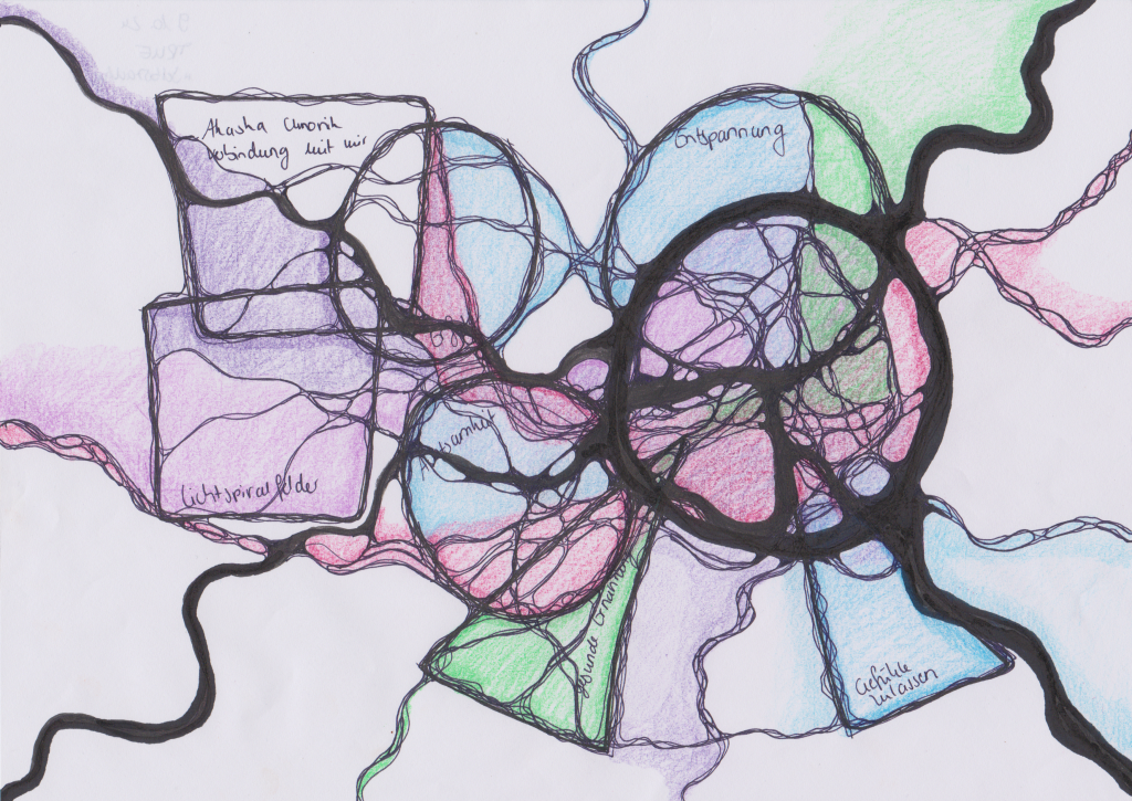 Es ist ein lebendiges Kunstwerk, gezeichnet aus Linien, Formen und Farben, die Deine Geschichte erzählen. Abgerundete Linienkreuzungen symbolisieren Deine Erfolge, Deine Freude und das Vertrauen, das Dich führt. Doch Linien, die verworren sind und Ecken ergeben spiegeln die Herausforderungen und Blockaden wider, die Dich manchmal festhalten und Deine Energie absaugen. Wenn wir alle Ecken und Kanten auf dem Papier abrunden, geschieht dies auch in unserem Denken, Fühlen und Handeln.
